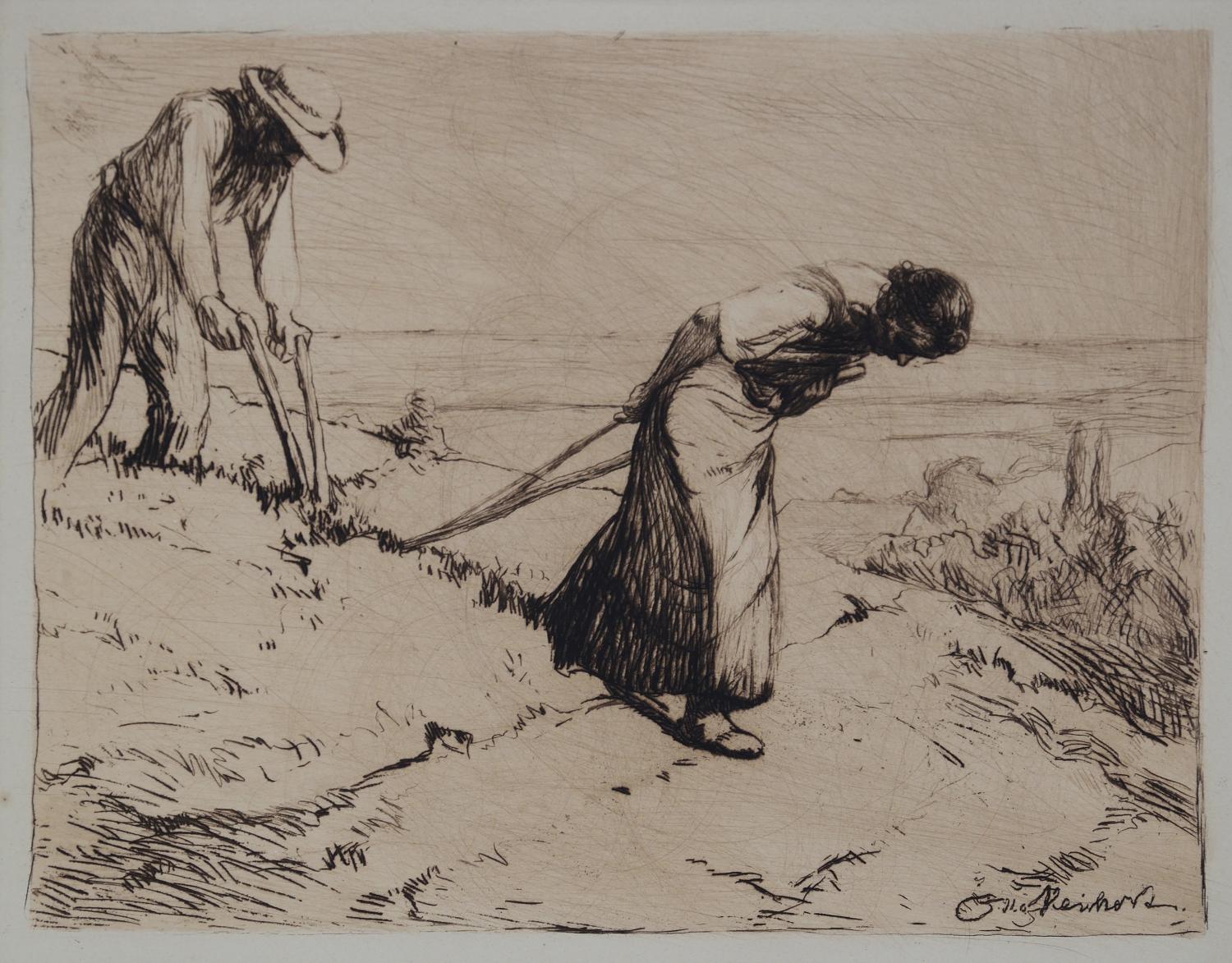 Es sind also neben den bereits genannten auch Werke so namhafter Künstler wie Nuria Quevedo, Arno Rink, Wolfgang Mattheuer, Bernhard Heisig, Rolf Münzner oder Baldwin Zettl zu sehen. Ergänzt wird die Schau durch Auszüge aus druckgrafischen Zyklen von Lea Grundig, Gerhard Gossmann, Armin Münch und Michael Emig. Drei frühere Arbeiten von Künstlern um 1900, die die Situation der ländlichen Bevölkerung im Allgemeinen beschreiben, nämlich von Käthe Kollwitz, Otto Reichert und Alfred Cossmann bilden quasi das Intro der Schau. In den Vitrinen werden außerdem Lithographien von Werner Tübke als Kontrapunkt zu den anderen Werken gezeigt. Bemerkenswert ist die unterschiedliche Herangehensweise der Künstler an die Thematik. Einer zeigt eher illustrativ episodische Szenen aus dem Bauernkrieg, oft sehr expressiv und mit großem Pathos aufgeladen, der nächste verdichtete das dargestellte Geschehen symbolträchtig, andere versuchten den kulturpolitischen Forderungen zu genügen, indem sie eine Gegenüberstellung der Landwirtschaftsgegenwart der DDR der 70er Jahre als positives Gegenbild zur blutigen Bauernrevolte von 1525 versuchten. Letzteres war nicht immer frei von unfreiwilliger Komik. Allerdings werden diese Darstellungen einer industriellen Landwirtschaft heute nicht mehr ungebrochen als Metaphern eines goldenen Zeitalters gelesen. Diese Schau bietet also interessante Ansätze sich mit der Bauernkriegsrezeption vor allem von Künstlern in der DDR auseinanderzusetzen und bildet einen lebhaften Kontrast zur Bildwelt des Panorama-Gemäldes. Sie ist zudem eine schöne Möglichkeit, selten gezeigten Werken im Panorama Museum wieder zu begegnen.