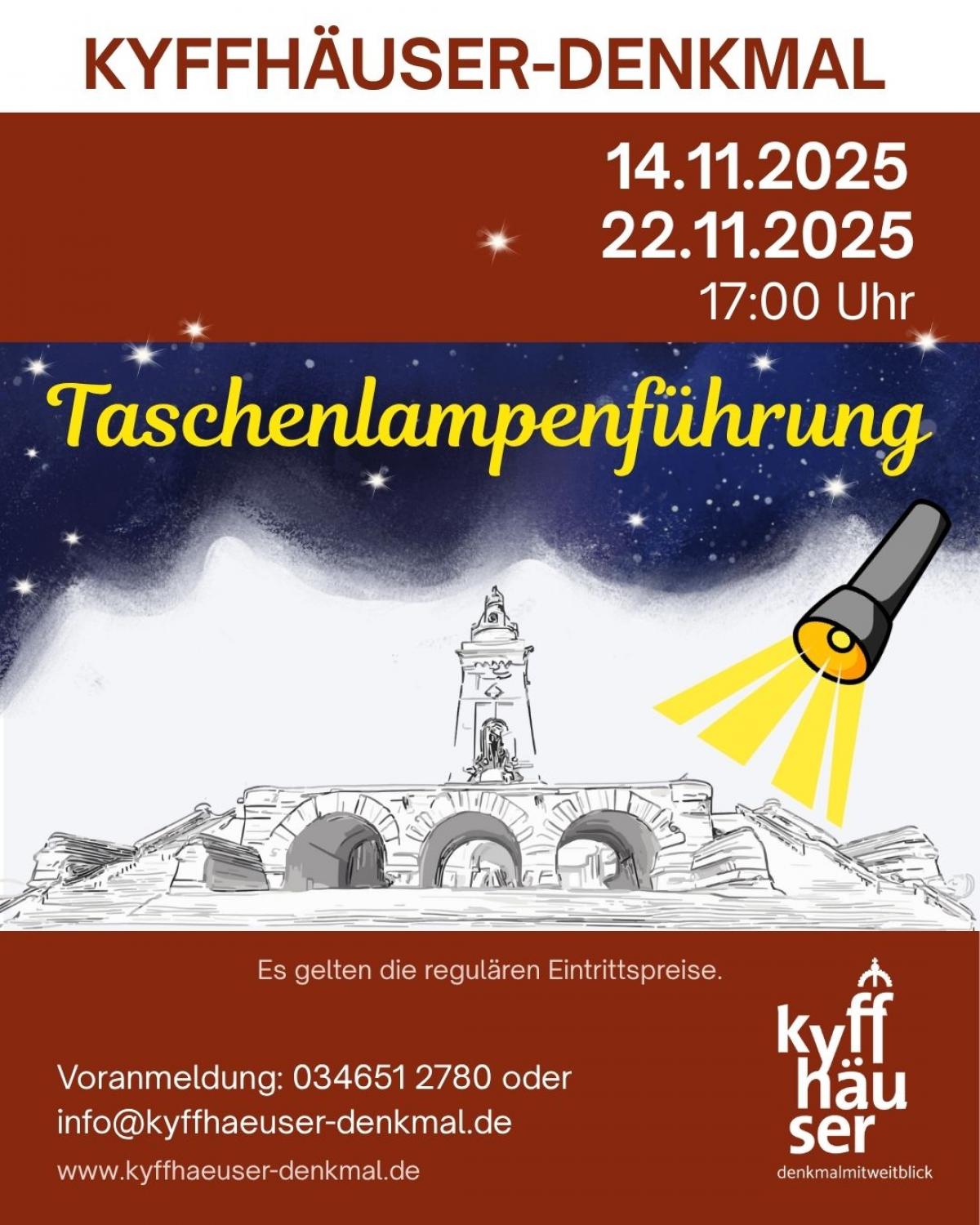 Treffpunkt: 17:00 Uhr an Kasse des Kyffhäuser-Denkmals. Ende der Veranstaltung: 19:30 Uhr. Es gelten die regulären Eintrittspreise.